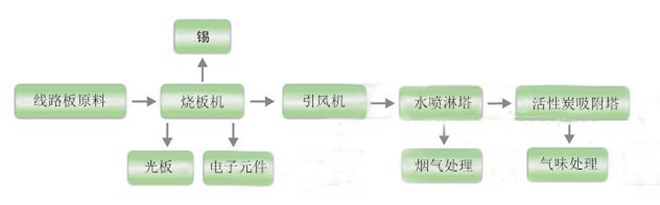 7.2工藝介紹: 采用電加熱或液化氣加熱,將內(nèi)部溫度開至120℃,錫將熔化,電子元件將隨著主機(jī)的運(yùn)行從電路板中脫落。該機(jī)具有自動(dòng)化、處理效率高、運(yùn)行成本低、占地面積小、操作簡(jiǎn)單、絕無粉塵污染等優(yōu)點(diǎn)。處理后的基板可以通過物理的方法回收銅和其它金屬,電子元件則可以進(jìn)行環(huán)保無害化分類回收再生利用。該機(jī)是理想的電路板電子元件拆解設(shè)備。